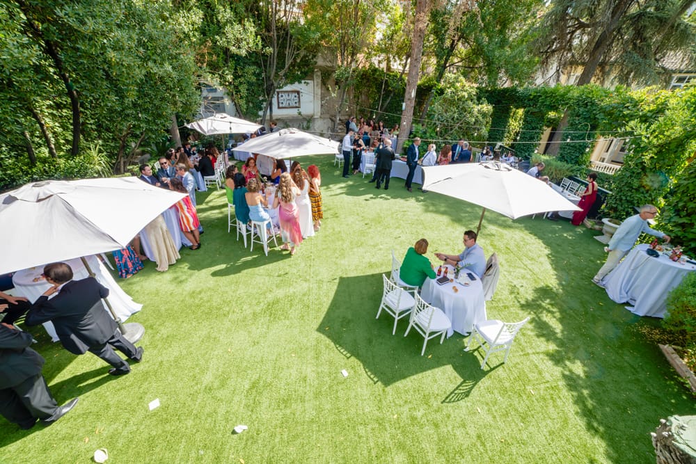 Las áreas abiertas, bajo la sombra de grandes árboles y sombrillas, permiten a los invitados disfrutar de un ambiente relajado y sofisticado. Es el momento de capturar sonrisas, abrazos y la alegría sincera de vuestra familia y amigos.