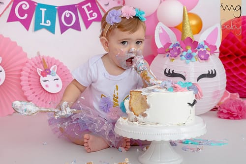 El primer cumpleaños de cualquier bebé es algo especial y merecedor de su propia sesión de fotos. Las sesiones de fotos Smash Cake son decorados de fiesta y una tarta o dulces que se expone al alcance del bebé. La curiosidad y el apetito de los pequeñines hace el resto.