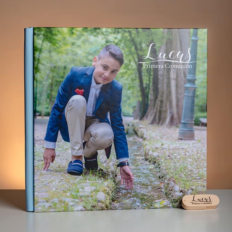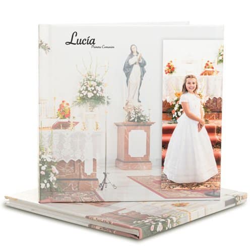 Elige la mejor foto de la Comunión y exhíbela en la portada de metacrilato, para darle relieve y vida. Personaliza el color del lomo y la contraportada para que haga juego con la foto y el acabado será fantástico.
